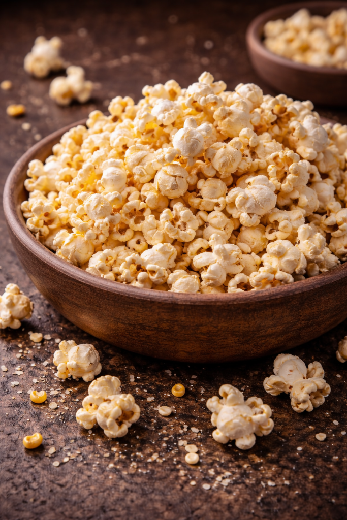 Unlike cinema-style popcorn, which is often loaded with butter and salt, lightly salted air-popped popcorn is lower in calories and fat. It’s also high in fibre, which can help keep you feeling fuller for longer.